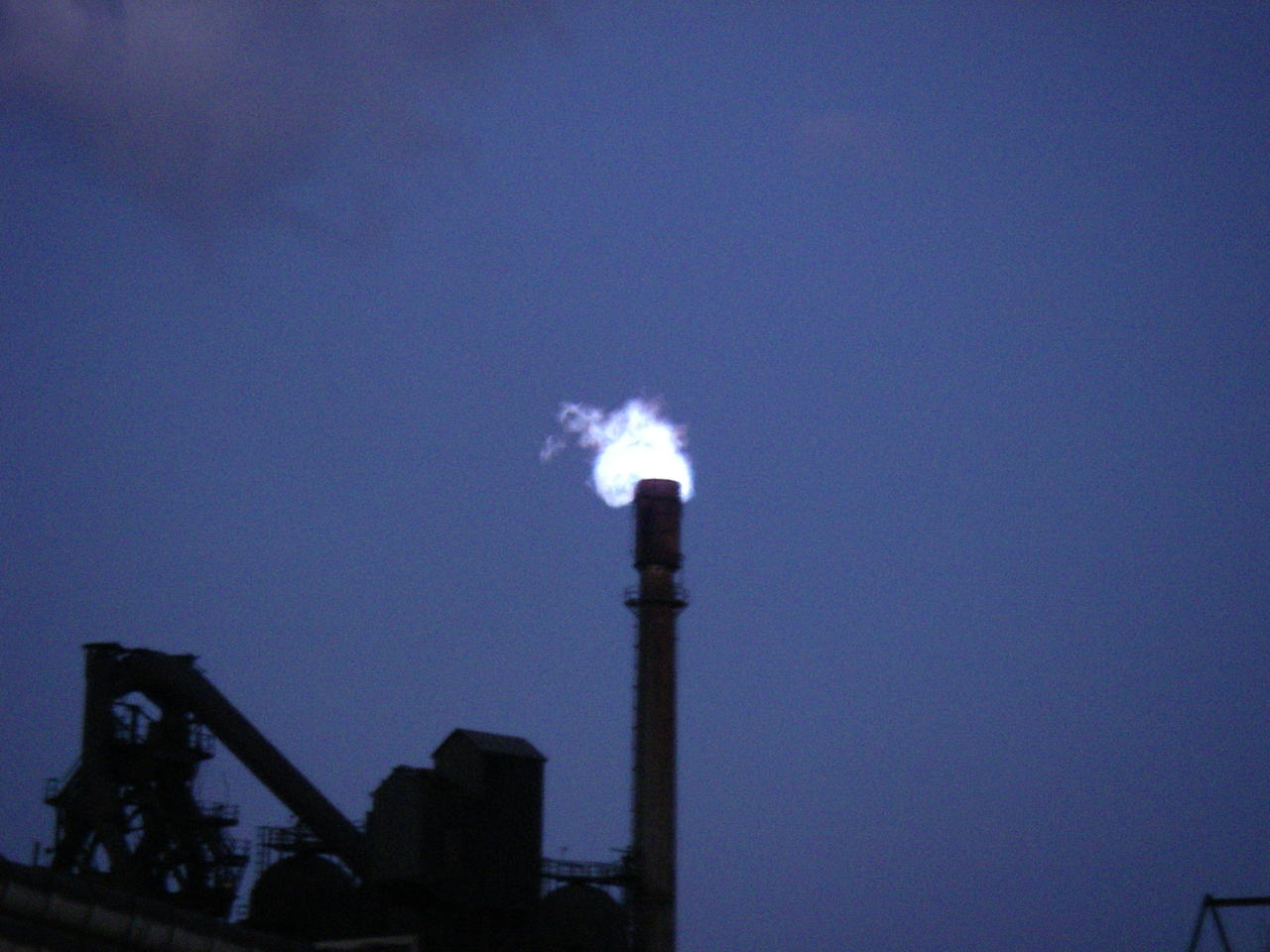 Exhaust stack from the blast furnace. You can only see this at night. Don't ask what they are burning in there...